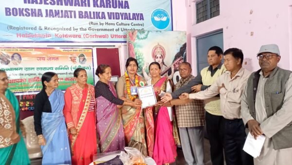 कोटद्वार । महिला दिवस के उपलक्ष्य में कण्वाश्रम मार्ग स्थित बोक्सा जनजाति स्कूल में स्वराज समिति के तत्वाधान में एक कार्यक्रम आयोजित किया गया । जिसमें सर्वप्रथम दीप प्रज्वलित कर सर्व धर्म प्रार्थना एवं गांधी जी के प्रिय भजन गाए गए । कार्यक्रम में गीता सिंह को डॉ अंबेडकर फेलोशिप नेशनल अवार्ड से सम्मानित किया गया । यह अवार्ड उन्हें भारतीय दलित साहित्य अकादमी के द्वारा दिया गया । आपको अवगत करा दे कि यह अवार्ड गीता सिंह को विगत 8 दिसंबर को दिल्ली में भारतीय दलित साहित्य अकादमी के सम्मान समारोह 2024 में भारतीय दलित साहित्य अकादमी के राष्ट्रीय अध्यक्ष डॉ सोहन पाल सुमनाक्षर के द्वारा सम्मानित किया जाना था मगर गीता सिंह के दिल्ली सम्मान समारोह में न पहुंचने के कारण उन्हें यह सम्मान महिला दिवस के अवसर पर सर्वोदयी पुरुष डॉ सुरेंद्र लाल आर्य के द्वारा डॉ अंबेडकर फेलोशिप नेशनल अवार्ड से सम्मानित किया गया । यह अवार्ड उन्हें वंचित, शोषित व उपेक्षित वर्ग दीन दुखियों की सेवा और बच्चों व महिलाओं में निरंतर जन जागरण का कार्य करने हेतु प्रदान किया गया है ।