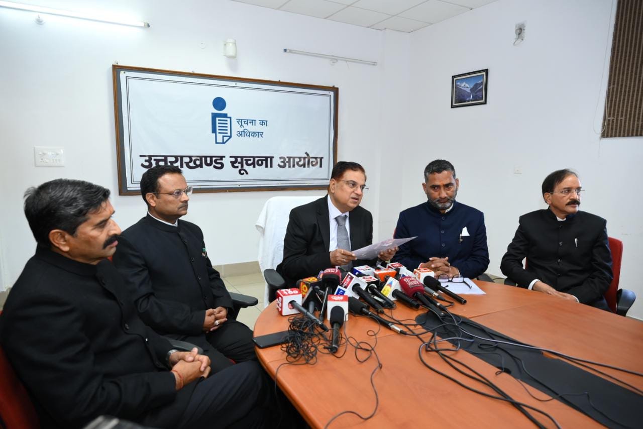 देहरादून : उत्तराखण्ड सूचना आयोग के सभागार में मुख्य सूचना आयुक्त अनिल चन्द्र पुनेठा द्वारा प्रेस वार्ता की गयी। इस अवसर पर नवनियुक्त राज्य सूचना आयुक्त योगेश भट्ट (जिन्हें आज राज्यपाल द्वारा सूचना आयुक्त के रूप में शपथ दिलायी गयी), तथा आयोग के सूचना आयुक्तगण विवेक शर्मा, विपिन चन्द्रा, अर्जुन सिंह उपस्थित रहे। योगेश भट्ट को सामान्य प्रशासन विभाग, उत्तराखण्ड शासन की अधिसूचना संख्या 1346 दिनांक 25.11.2022 के द्वारा सूचना आयुक्त के रूप में नियुक्त किया गया है। श्री भट्ट की नियुक्ति कार्यभार ग्रहण करने की तिथि से 03 वर्ष की अवधि अथवा 65 वर्ष की आयु (जो भी पहले हो) तक प्रभावी रहेगी।