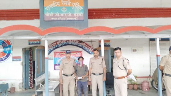 रूडकी : जीआरपी रूडकी ने मोबाइल चोर को किया गिरफ्तार। जीआरपी चौकी पर पंजीकृत मुकदमा अपराध संख्या 24/ 23 धारा 379 आईपीसी बनाम अज्ञात पंजीकृत हुआ मुकदमे की विवेचना उपनिरीक्षक संजय शर्मा प्रभारी चौकी जीआरपी रुड़की के सुपुर्द हुई, मुकदमे के सफल अनावरण हेतु पुलिस अधीक्षक रेलवेज उत्तराखंड अजय गणपति एवं अपर पुलिस अधीक्षक रेलवेज उत्तराखंड अरुणा भारती के दिशा निर्देशन में थानाध्यक्ष थाना जीआरपी लक्सर उपनिरीक्षक ममता गोला ने थाना स्तर पर एक टीम का गठन किया। जिसमें उपनिरीक्षक संजय शर्मा प्रभारी चौकी जीआरपी रुड़की, कॉन्स्टेबल 79 वीरेंद्र कुमार, कॉन्स्टेबल 162 राजीव कुमार को अनावरण हेतु आवश्यक दिशा निर्देश दिए गए । आज 24 जून 2023 को गठित टीम ने अभियुक्त मोहित उर्फ गंजा पुत्र राजवीर निवासी शक्ति विहार कॉलोनी थाना गंग नहर रुड़की जिला हरिद्वार को मुकदमे में चोरी गए मोबाइल विवो कंपनी के साथ गिरफ्तार किया गया। जीआरपी द्वारा की गई त्वरित कार्यवाही करने पर वादी मुकदमा एवं आने जाने वाले यात्रियों एवं रेलवे प्रशासन द्वारा पुलिस कार्य की प्रशंसा की गई ।