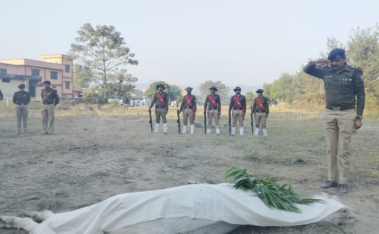 हरिद्वार : पुलिस ने नम आंखों से किया “राजा” को विदाा। 20 वर्ष से अधिक विभाग की शानदार सेवा देने वाले राजा की राजकीय सम्मान के साथ विदाई में सम्मिलित हुए जिले के पुलिस मुखियाा। वर्ष 2003 में पीटीसी मुरादाबाद से प्रशिक्षण प्राप्त कर पुलिस विभाग का अंग बने “राजा” का 20 वर्ष से अधिक की सेवा उपरांत लंबी बीमारी के बाद आज 24 वर्ष की आयु में देहांत हो गया। हरिद्वार के पिछले दो महाकुंभ, दो अर्ध कुंभ एवं इस दौरान के सभी महत्वपूर्ण स्नानों में राजा द्वारा बेहतरीन सेवा दी गई। इसके अतिरिक्त जनपद देहरादून में भी अपनी सेवा दे चुके “राजा” विगत कुछ समय से अस्वस्थ चल रहा था। राजा की मृत्यु की जानकारी मिलते ही एसएसपी हरिद्वार अजय सिंह घुड़सवार लाइन बैरागी कैंप पहुंचे एवं अन्य पुलिस अधिकारियों के साथ राजा की अंतिम विदाई समारोह में सम्मिलित हुए। कहा “राजा” हमारी घोड़ा पुलिस लाइन का महत्वपूर्ण घोड़ा था। जिसके जाने का हम सभी को दु:ख है ।
