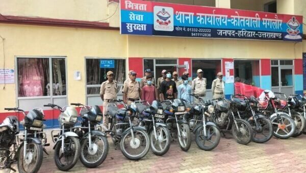 मंगलौर : कांवड़ यात्रा के लिए की जा रही तैयारियों के बीच पुलिस टीम ने वाहन चोरी गिरोह के खिलाफ बड़ी सफलता हासिल करते हुए मुखबिर द्वारा उपलब्ध करायी गई ठोस सूचना के आधार पर गिरोह के तीन सदस्यों को दबोचने के साथ-साथ उनकी निशांदेही पर 12 मोटरसाइकिल व 01 चेसिस नंबर का ढांचा बरामद किए गये। कोतवाली मंगलौर पर पंजीकृत मु0अ0सं0 483/23 धारा 379 आईपीसी से संबंधित मोटरसाइकिल की तलाश में इलेक्ट्रॉनिक एवं मैन्युअल इनपुट के आधार पर लगातार जुटी पुलिस टीम ने दिनांक 03.07.2023 को कामयाबी हासिल की। अभियुक्तों से पूछताछ में जानकरी मिली की ये गिरोह अनेक थाना क्षेत्रो के भिन्न-भिन्न स्थानो से मोटरसाइकिल चोरी करके उनके पार्ट्स को बेचते था तथा बचे हुए चेसिस नंबर के हिस्से को नहर में फेंक देता था। बरामद एक मोटरसाइकिल भगवानपुर थाना क्षेत्र से चोरी हुई थी, अन्य मोटरसाइकिल के संबंध में अन्य जनपदों/ थानों से जानकारी की जा रही है।