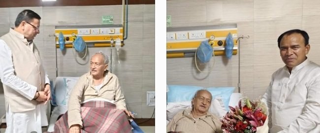 देहरादून। सीएम धामी ने नई दिल्ली स्थित राम मनोहर लोहिया हॉस्पिटल पहुंचकर उत्तराखंड के पूर्व मुख्यमंत्री एवं महाराष्ट्र के पूर्व राज्यपाल भगत सिंह कोश्यारी से भेंट कर उनका कुशलक्षेम जाना। वही स्वास्थ्य मंत्री धन सिंह रावत ने भी राम मनोहर लोहिया हॉस्पिटल पहुंचकर उत्तराखंड के पूर्व मुख्यमंत्री एवं महाराष्ट्र के पूर्व राज्यपाल भगत सिंह कोश्यारी से भेंट कर उनका हाल-चाल जाना। धन सिंह रावत के साथ पिथौरागढ़ भाजपा जिला अध्यक्ष गिरीश जोशी एवं चंपावत भाजपा जिला अध्यक्ष निर्मल मेहरा मौजूद रहे।
