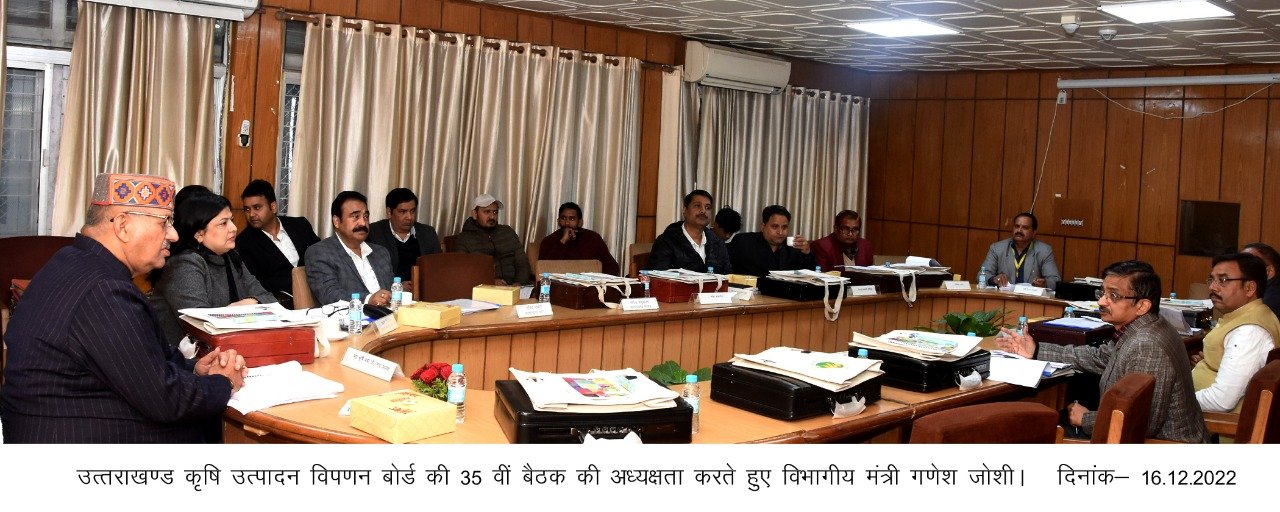 कृषि मंत्री गणेश जोशी ने लोकल उत्पाद जैसे मडुवा आदि की खेती को प्रोत्साहित करने तथा लोकल उत्पादन को बढ़ाने के लिए अधिकारियों को दिशा-निर्देश दिये। उन्होंने कहा कि सरकार द्वारा किसानों के हित में इस प्रकार की नीतियां बनायी जानी चाहिए जिससे किसानों को लगे कि सरकार हमारे लोकल उत्पादों को उचित दामों पर खरीदे। इस अवसर पर प्रबन्ध निदेशक निधि यादव, निदेशक कृषि केसी पाठक, संयुक्त आयुक्त खाद्य डॉ. महेंद्र सिंह बिसेन, विभागीय अधिकारी तथा उत्तराखण्ड कृषि उत्पादन विपणन बोर्ड के सदस्य उपस्थित रहे।