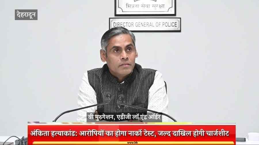 देहरादून : अंकिता मर्डर केस मामले में जल्द चार्ज शीट फाइल होगी। इसके साथ ही वीआईपी का नाम जानने सहित कही बिंदुओ को जानने के लिए पुलिस नार्को टेस्ट कराएगी। एडीजी वी मुरुगेशन ने बताया कि, वीआईपी का नाम जानने के लिए पुलिस नार्को टेस्ट कराएगी। जल्द ही न्यायालय में अर्जी दाखिल करेंगे। एडीजी ने बताया कि, 23 तारीख से पहले न्यायालय में चार्जशीट भी दाखिल कर दी जाएगी। उन्होंने 10 दिन में चार्जशीट दाखिल करने की बात कही। एडीजी ने जनता से भी अपील की है कि, अफवाहें ना फैलाएं, उत्तराखंड पुलिस गंभीरता से विवेचना कर रही है। मामले में आईपीसी की धारा 302, 201, 120 बी लगाई गई है। इसके अतिरिक्त कई धाराओं में मामला दर्ज़ है। कोर्ट में नार्को टेस्ट के लिए याचिका दी जाएगी। अनुमति मिलने पर टेस्ट होगा।