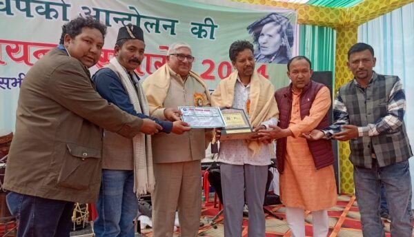 गोपेश्वर (चमोली)। चमोली जिले के जोशीमठ के रविग्राम खेल मैदान में गौरादेवी पर्यावरण एवं सामाजिक विकास समिति की ओर से चिपको आंदोलन की स्वर्ण जयंती पर दो दिवसीय कार्यक्रम आयोजित किया था। कार्यक्रम के दूसरे दिन बुधवार को समिति की ओर से विभिन्न क्षेत्रों में उत्कृष्ट कार्य करने के लिए छह लोगों को सम्मानित किया गया। बुधवार को दूसरे दिन कार्यक्रम का उद्घाटन बागवानी बोर्ड के राष्ट्रीय अध्यक्ष वीरेंद्र जुयाल ने दीप प्रज्वलित कर किया।
