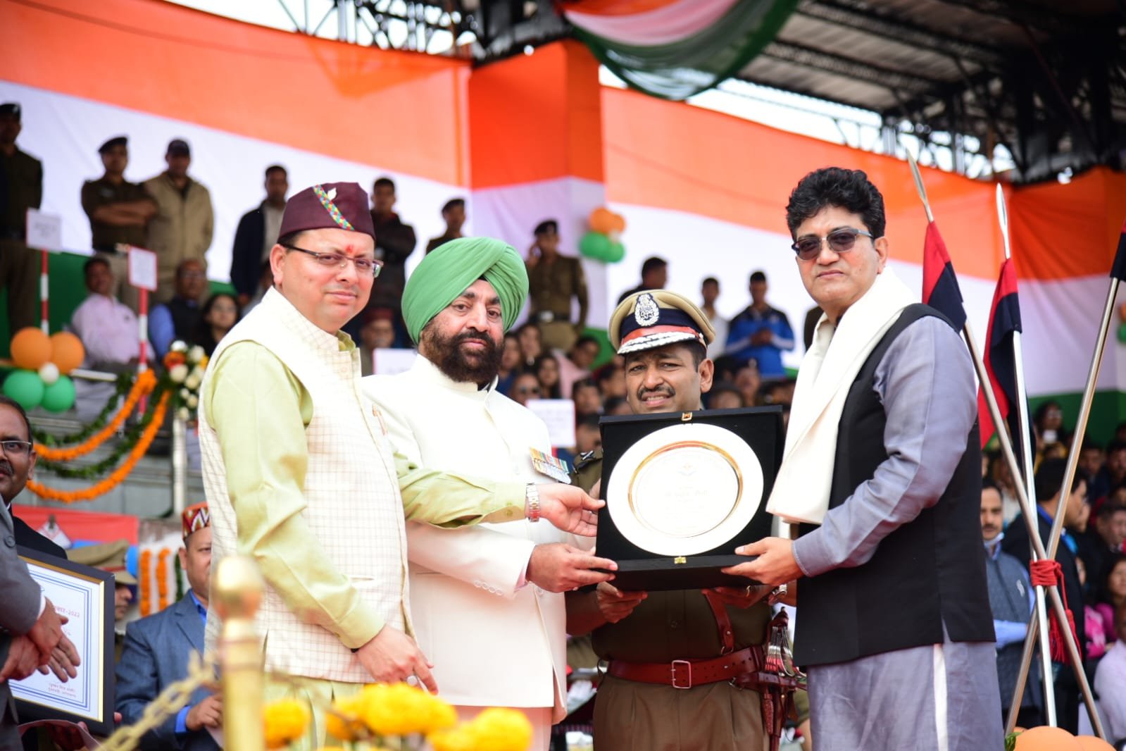इस अवसर पर कैबिनेट मंत्री सुबोध उनियाल, सांसद माला राज्यलक्ष्मी शाह, विधायक विनोद चमोली, सविता कपूर, मेयर सुनील उनियाल गामा, मुख्य सचिव डॉ. एस. एस. संधु, डीजीपी श्री अशोक कुमार, सचिव आर मिनाक्षी सुंदरम, शैलेस बगोली, विशेष सचिव अभिनव कुमार, दिलीप जावलकर, आर के सुधांशू, डाॅ. बीवीआरसी पुरूषोत्म, आयुक्त गढ़वाल मण्डल सुशील कुमार, पंकज पाण्डेय, दिपेन्द्र चौधरी, डाॅ. आर राजेश कुमार, जिला अधिकारी देहरादून सोनिका शासन, अपर सचिव विजय कुमार जोगदण्डे, पुलिस एवं जिला प्रशासन के वरिष्ठ अधिकारी एवं अन्य महानुभाव उपस्थित थे।