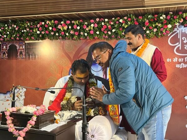 श्री बदरीनाथ धाम : श्री बदरीनाथ धाम स्थित होटल योगा परिसर में नर- नारायण सेवा समिति रामनगर द्वारा आज शुक्रवार से श्रीमद्भागवत कथा महापुराण का शुभारंभ हो गया है श्रीमद्भागवत कथा में श्री बदरीनाथ- केदारनाथ मंदिर समिति ( बीकेटीसी) के उपाध्यक्ष किशोर सिंह पंवार मुख्य अतिथि के बतौर शामिल हुए। इस अवसर पर नारायण सेवा समिति के पदाधिकारियों द्वारा बीकेटीसी उपाध्यक्ष किशोर पंवार का स्वागत किया गया।