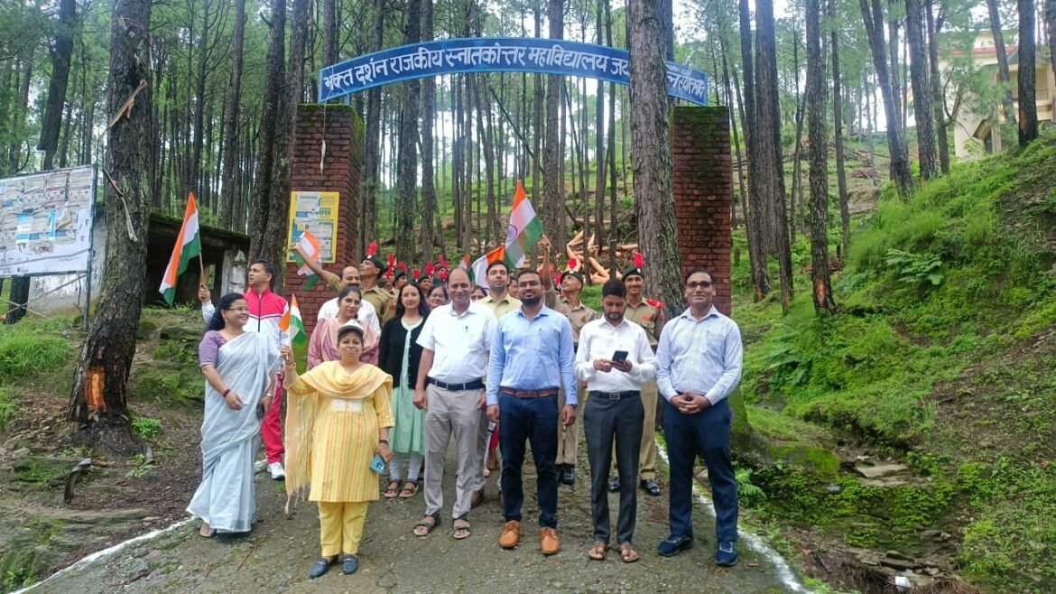 लैंसडाउन : भक्त दर्शन राजकीय स्नातकोत्तर महाविद्यालय जयहरीखाल में धूमधाम और हर्ष उल्लास के साथ से मनाया गया स्वतंत्रता दिवस समारोह l कार्यक्रम का शुभारंभ महाविद्यालय की प्राचार्य डॉ. प्रो. लवनी आर राजवंशी द्वारा ध्वजारोहण कर किया गया एनसीसी कैडेट्स के द्वारा मार्च पास्ट कर तिरंगे को सलामी दी गई जिसका नेतृत्व यूनिट कमांडर छात्र गौरव गोड के द्वारा किया गया जिसके बाद अमर शहीदों को याद करते हुए वॉल ऑफ हीरोज पर पुष्पांजलि अर्पित की गई l