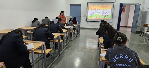 देहरादून। श्री गुरु राम राय विश्वविद्यालय (एस.जी.आर.आर.यू) में सामाजिक एंव मानविकी विज्ञान संकाय द्वारा 21 फरवरी को अंतर्राष्ट्रीय मातृभाषा दिवस बड़े उत्साह के साथ मनाया गया। हिन्दी विभाग द्वारा अतंराष्ट्रीय मातृभाषा के उपलक्ष्य पर भाषाः विचारों का वाहक, भाषा और संस्कृति अटूट संबध, भाषा और बहुभाषावादःवैश्विक परिप्रेक्ष्य, भाषा और विविधताः एकता में अनेकता, विषयों पर निबंध प्रतियोगिता का आयोजन किया गया।