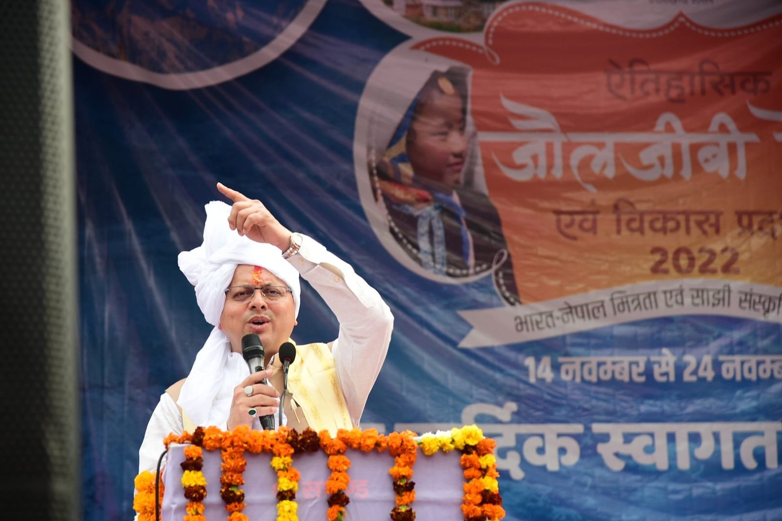पिथौरागढ़ : मुख्यमंत्री पुष्कर सिंह धामी ने काली एवं गोरी नदी के संगम स्थल जौलजीबी में आयोजित ऐतिहासिक जौलजीबी मेला एवं विकास प्रदर्शनी -2022 का उद्घाटन रिबन काटकर एवं दीप प्रज्ज्वलित कर किया। मुख्यमंत्री पुष्कर सिंह धामी ने कहा कि जौलजीबी मेला क्षेत्र के आर्थिक एवं सांस्कृतिक विकास में बहुत महत्व रखता है। यह मेला भारत, नेपाल एवं तिब्बत के पारस्परिक व्यापार को बढ़ावा देता आ रहा है। यह मेला भारत एवं नेपाल के रिश्तों को ऑक्सीजन देने का काम करता है। मुझे प्रसन्नता है कि यह मेला भारत एवं नेपाल देश के बीच संस्कृति, सभ्यता के साथ-साथ व्यापारिक संबंधों को बढ़ाता आ रहा है।