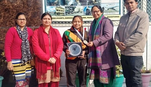 कोटद्वार : कोटद्वार में 11वीं कक्षा की छात्रा अनुराधा भारद्वाज ने उत्तराखण्ड तीरंदाजी संघ द्वारा 02 से 05 जनवरी 2024 तक देहरादून में आयोजित प्रतियोगिता को जीतकर क्षेत्र व राज्य का नाम रोशन किया है। जिसको लेकर विद्यालय प्रबंधन ने छात्रा को सम्मानित किया।प्रथम उत्तराखण्ड तीरंदाजी लीग में भारत के शीर्ष कंपाउंड खिलाड़ियों ने प्रतिभाग किया। इस प्रतियोगिता में कुल 10 अंतर्राष्ट्रीय खिलाड़ियों ने भाग लिया जिसमें 04 अर्जुन अवार्ड से सम्मानित खिलाड़ी अभिषेक वर्मा दिल्ली से, रजत चौहान राजस्थान से, महाराष्ट्र से अदिति कोपिचंन एवं औजस हैं। इस इवेंट में टिहरी रेडर टीम से औजस (अर्जुन अवार्डी), कुशल दलाल (अंतर्राष्ट्रीय खिलाड़ी) व अनुराधा भारद्वाज (राष्ट्रीय खिलाड़ी) ने प्रतियोगिता में टीम के रूप में प्रथम स्थान प्राप्त किया। इस प्रतियोगिता को जीतने पर टीम को एक लाख रूपये की धनराशि, ट्राॅफी तथा गोल्ड मेडल प्रदान किये गये। अनुराधा भारद्वाज के प्रतियोगिता को जीतने पर परिवार, स्कूल प्रबंधन एवं क्षेत्रवासियों में खुशी की लहर दौड़ गई। क्षेत्रवासियो ने अनुराधा की माता अंजू भारद्वाज को बधाई एवं मिठाई खिलाकर खुशी मनाई। अब अनुराधा अगले टूर्नामेंट के लिए रायपुर जाएंगी।