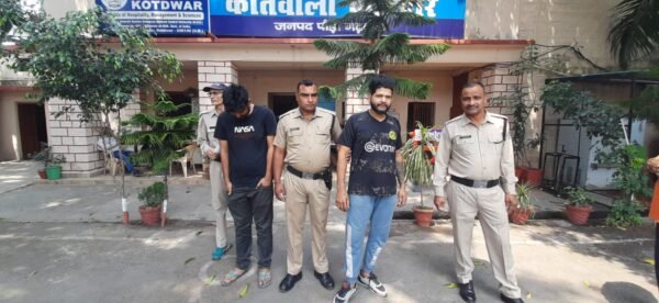 कोटद्वार। मुख्यमंत्री धामी द्वारा वर्ष- 2025 तक उत्तराखण्ड को नशामुक्त बनाये जाने हेतु चलाये जा रहे अभियान के तहत वरिष्ठ पुलिस अधीक्षक पौड़ी श्वेता चौबे द्वारा जनपद में नशीले मादक पदार्थों पर प्रभावी अंकुश लगाये जाने व अवैध तरीके से नशीले पदार्थों की खरीद फरोख्त करने वालों के विरूद्ध चैकिंग अभियान चलाए जाने के निर्देश पर अपर पुलिस अधीक्षक कोटद्वार शेखर चन्द सुयाल, पुलिस उपाधीक्षक गणेश लाल कोहली व पुलिस उपाधीक्षक ऑपरेशन विभव सैनी के पर्यवेक्षण तथा प्रभारी निरीक्षक मनीभूषण श्रीवास्तव के नेतृत्व में गठित पुलिस टीम द्वारा सोमवार को चैकिंग के दौरान नशा तस्कर पदमपुर सुखरों, निकट देवी मन्दिर निवासी मनीष नेगी पुत्र चंद्रमोहन सिंह नेगी और सिताबपुर निवासी अभियुक आलोक पुत्र अरविंद को बीईएल रोड़ तिराहा कोटद्वार के पास से 7.10 ग्राम अवैध स्मैक के साथ गिरफ्तार किया गया।
