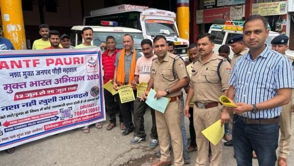 कोटद्वार। भारत सरकार गृह मंत्रालय द्वारा नशामुक्त भारत अभियान के अंतर्गत स्थानीय थाना पुलिस कोटद्वार, सीआईयू, एएनटीएफ ने संयुक्त रूप से बस स्टेशन, टैक्सी स्टैंड, रेलवे स्टेशन सहित अन्य जगहों पर शुक्रवार को जागरूकता अभियान चलाया । जिसमें सभी को नशे के दुष्परिणाम से अवगत कराया गया तथा टोल फ्री नंबर के बारे में भी जानकारी दी गई। बताया गया कि अगर कोई भी व्यक्ति नशा विक्रेता के बारे में सही जानकारी देगा, उसे उचित ईनाम दिया जायेगा और उसका नाम भी गुप्त रखा जायेगा।