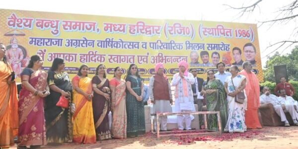 हरिद्वार : मुख्यमंत्री पुष्कर सिंह धामी ने रविवार को गौतम फार्म हाउस कनखल में वैश्य बन्धु समाज, मध्य हरिद्वार द्वारा आयोजित महाराजा अग्रसेन वार्षिकोत्सव व पारिवारिक मिलन समारोह में प्रतिभाग किया। कार्यक्रम का शुभारम्भ मंत्रोच्चारण के बीच दीप प्रज्ज्वलित कर किया गया।
