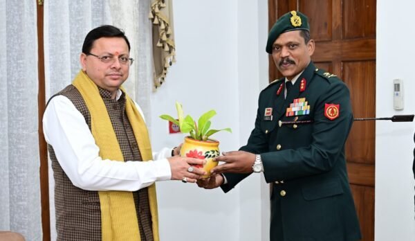 मुख्यमंत्री पुष्कर सिंह धामी से उत्तराखण्ड सब एरिया के जीओसी मेजर जनरल आर प्रेम राज ने की शिष्टाचार भेंट by December 21, 2023 December 21, 2023 36 देहरादून : मुख्यमंत्री पुष्कर सिंह धामी से गुरूवार को मुख्यमंत्री आवास में उत्तराखण्ड सब एरिया के जीओसी मेजर जनरल आर प्रेम राज ने शिष्टाचार भेंट की। previous post सचिव कार्यक्रम दीपक कुमार ने जनपद चमोली में विकास कार्यो की ली समीक्षा बैठक, जिले में वेडिंग डेस्टिनेशन्स तैयार करने और एडवेंचर टूरिज्म को बढ़ाने के दिए निर्देश next post मुख्यमंत्री पुष्कर सिंह धामी ने उत्तरकाशी के सिलक्यारा रेस्क्यू ऑपरेशन में टनल की खुदाई में अहम भूमिका निभाने वाले 12 रैट माइनर्स को सम्मानित कर 50-50 हजार रूपये के सम्मान राशि के चेक भी किये प्रदान Related Posts बदरीनाथ मंदिर को गेंदे के फूलों से हुआ... October 19, 2025 पिंडर नदी पर जल्द किया जाए पुल निर्माण October 19, 2025 सोने-चांदी के भाव आसमान, खरीदारी से लोगों ने... October 19, 2025 बदरीनाथ धाम में आज से दीपोत्सव कार्यक्रम October 19, 2025 सैंट थैरेसा श्रीनगर ने जीती क्रिकेट की ट्राफी October 19, 2025 उत्तराखंड के रजत जयंती समारोह में शामिल हो... October 19, 2025