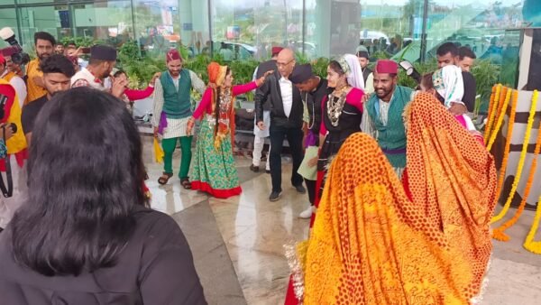 देहरादून : जी -20 सम्मेलन में प्रतिभाग करने पहुंचे 46 प्रतिनिधिमंडल के सदस्य पहुंचे जिनका आज जौलीग्रांट एयरपोर्ट पर स्थानीय संस्कृति एवं लोक परंपराओं से ढोल दमाऊ के साथ भव्य स्वागत किया गया। इस अवसर पर मेहमान स्थानीय लोक संस्कृति से रूबरू हुए, स्थानीय गीतों पर थिरके। इस अवसर पर जिलाधिकारी सोनिका, डीआईजी/ वरिष्ठ पुलिस अधीक्षक दलीप सिंह कुंवर, मुख्य विकास अधिकारी झरना कमठान, अपर जिलाधिकारी प्रशासन डॉ. एसके बरनवाल, नगर मजिस्ट्रेट प्रत्यूष सिंह, उप जिलाधिकारी डोईवाला शैलेंद्र सिंह नेगी, उप जिलाधिकारी कीर्तिनगर टिहरी शालिनी पंत, पुलिस अधीक्षक ग्रामीण कमलेश उपाध्याय, तहसीलदार सोहन सिंह रांगड़, मौ. शादाब, सहित जिला स्तरीय अधिकारी, स्थानीय कलाकार, जिला प्रशासन एवं पुलिस के अधिकारी कार्मिक उपस्थित रहे।
