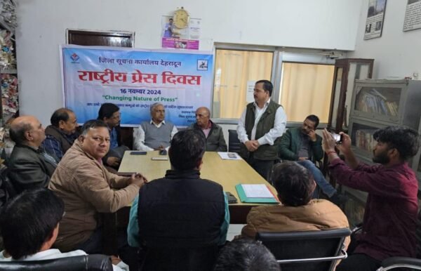 देहरादून : भारतीय प्रेस परिषद नई दिल्ली के निर्देशों के क्रम में ‘‘राष्ट्रीय प्रेस दिवस के अवसर आज जिला सूचना कर्यालय कक्ष में वरिष्ठ पत्रकार नरेश मनोचा की अध्यक्षता तथा वरिष्ठ पत्रकार वीडी शर्मा की गरिमामई उपस्थिति में सहायक निदेशक/जिला सूचना अधिकारी बी.सी नेगी ने भारतीय प्रेस परिषद के द्वारा दिए गए विषय ‘‘Changing Nature of Press” के युग में मीडिया’’ विषय पर आयोजित गोष्ठी का शुभारम्भ किया।