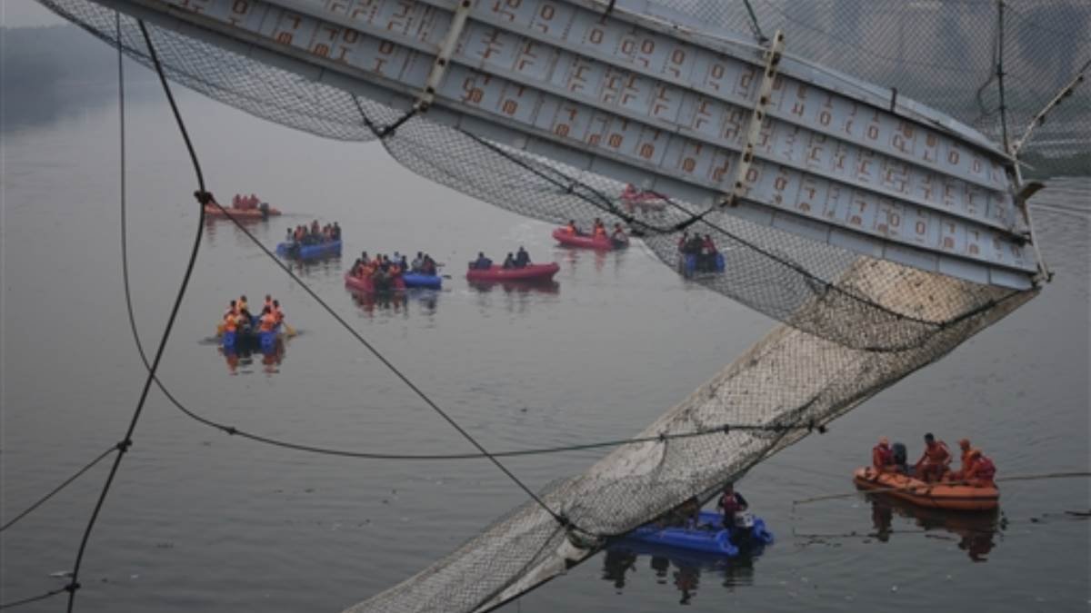 गुजरात के मोरबी में एक सस्पेंशन ब्रिज के गिरने से मरने वालों की संख्या सोमवार सुबह तक बढ़कर 141 हो गई है। राजकोट रेंज के पुलिस महानिरीक्षक अशोक यादव ने मीडिया से इस बात की पुष्टि की है।