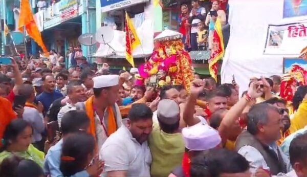 थराली (चमोली)। नंदा लोक जात के तहत बधाण की नंदा भगवती की उत्सव डोली अपने छठवें पड़ाव सूना से चलकर चेपड़ो रात्री विश्राम के लिए पहुंच गई है। नंदा लोकजात जैसे-जैसे आगर बढ़ रही है वैसे-वैसे पिण्डर घाटी का माहौल भी पूरी तरह नंदामय होता जा रहा है। शुक्रवार को नंदा की उत्सव डोली का थराली बाजर में फूलों की वर्षा कर स्वागत किया। नंदा भक्तो ने पूजा अर्चना कर मनोतियां मांगी देवी के पश्वाओं ने अपने भक्तों को आशीर्वाद दिया। थराली बाजार में नगर पंचायत अध्यक्ष दीपा भारती, देवी जोशी, कृष्ण पाल सिंह गुसाई, संदीप रावत, गोपाल दत्त पंत, दिनेश जोशी, गोपाल दत्त जोशी, मंदिर समिति देवराडा के अध्यक्ष भुवन चंद हटवाल, उत्सव डोली के साथ नंदाक बधाण समिति अध्त्रध्यक्ष नरेश गौड़ आदि मौजूद थे।