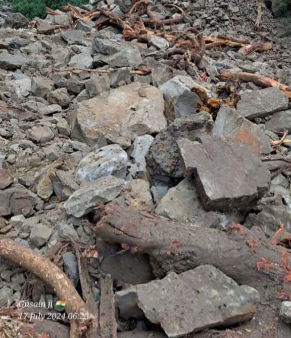 कोटद्वार। राष्ट्रीय राजमार्ग कोटद्वार-दुगड्डा के बीच दुर्गा देवी मंदिर के निकट पहाड़ी से सड़क पर बोल्डर व मलवा आने से एक बार फिर कोटद्वार-पौड़ी, श्रीनगर मार्ग बंद हो गया है। पिछले कुछ दिनों से पांचवे मील के पास मलबा आने से हाई-वे बंद हो रहा था। अब कोटद्वार से करीब 10 किमी दूर दुर्गा देवी मंदिर के समीप आए बोल्डर से यहां एक नया डेंजर जोन बन गया है। सड़क पर बड़े-बड़े बोल्डर आने से लगभग सौ मीटर सड़क बंद हो गई है। बताया जा रहा है कि बुधवार सुबह पांच बजे कोटद्वार दुगड्डा मार्ग पर बोल्डर व भारी मात्रा में मलवा आने से सड़क पूरी तरह बंद हो गई है। पौड़ी श्रीनगर जाने वाले वाहनों को सिद्धबली मंदिर के पास ही रोक दिया गया है। कोटद्वार-दुगड्डा मार्ग पर दुर्गा देवी मंदिर के पास नया डेंजर प्वाइंट बन गया है। लोनिवि रास्ता खोलने की तैयारी में जुट गया है। शाम को लगभग तीन बजे हल्के वाहनों के लिए रास्ता खोल दिया गया है ।