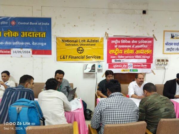 देहरादून : राष्ट्रीय विधिक सेवा प्राधिकरण, नई दिल्ली के निर्देशानुसार जिला विधिक सेवा प्राधिकरण, देहरादून के तत्वावधान में 14 सितम्बर, 2024 को प्रातः 10.00 बजे से सायं 05.00 बजे तक जिला मुख्यालय देहरादून, बाह्य न्यायालय ऋषिकेश, विकासनगर एवं डोईवाला जनपद देहरादून के न्यायालयों में राष्ट्रीय लोक अदालत का आयोजन किया गया। इस लोक अदालत में मोटर दुर्घटना क्लेम, सिविल मामले, पारिवारिक मामलें, चैक बाउन्स से सम्बंधित मामलें व अन्य शमनीय प्रकृति के आपराधिक मामलें लगाये गये थे। लोक अदालत में संदर्भित मामलों के निस्तारण हेतु जिला विधिक सेवा प्राधिकरण, देहरादून द्वारा कुल 25 पीठों का गठन किया गया था।