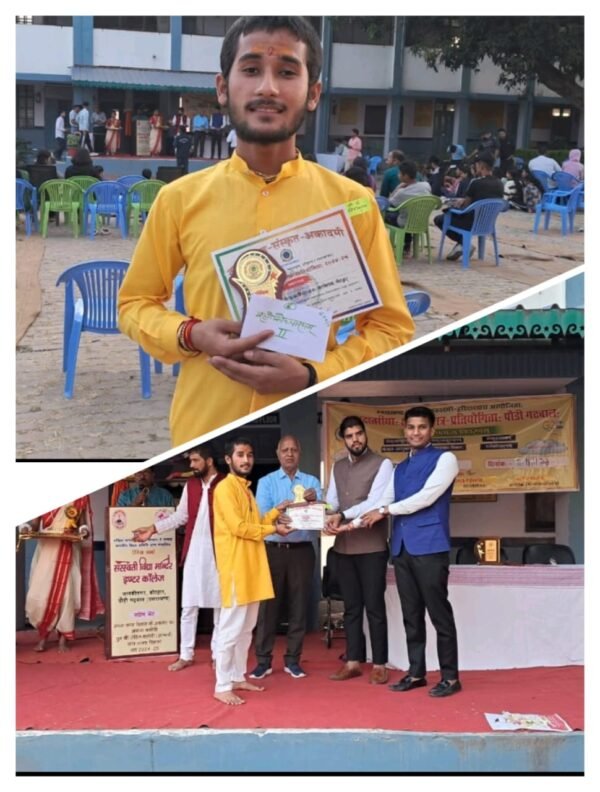 कोटद्वार । राजकीय स्नातकोत्तर महाविद्यालय कोटद्वार के संस्कृत विभाग के छात्र नवीन बिष्ट ने जनपद स्तर पर श्लोकोच्चारण प्रतियोगिता में द्वितीय स्थान प्राप्त कर महाविद्यालय का नाम रोशन किया । उत्तराखंड संस्कृत अकादमी द्वारा सोलहवां संस्कृत महाकुंभ, कनिष्ठ एवं वरिष्ठ वर्ग की प्रतियोगिताएं जो विगत माह अक्टूबर की 15 व 16 तारीख को खंड स्तरीय, जनता इंटर कॉलेज मोटाढांग कोटद्वार में सम्पन्न हुई थी वहीं नवम्बर 12 व 13 को जनपद स्तरीय प्रतियोगिताएं जानकी नगर सरस्वती विद्या मंदिर इंटर कॉलेज कोटद्वार में संपन्न हुई । जिसमें संस्कृत नाटक, संस्कृत समूह गान, संस्कृत नृत्य, संस्कृत वाद विवाद, संस्कृत आशु भाषण एवं संस्कृत श्लोकोच्चारण प्रतियोगिताएं संपन्न हुई । इन प्रतियोगिताओं में वरिष्ठ वर्ग में महाविद्यालय के छात्र छात्राओं ने बढ़-चढ़कर प्रतिभाग किया । खंड स्तरीय प्रतियोगिताओं में संस्कृत समूह गान- निकिता, स्वाति, चारु, शालिनी, आशीष, दिव्यांशी, आभास, मनीषा एवं संस्कृत समूह नृत्य में चारु, रुखसार, खुशबू, सृष्टि, शाईना, आशीष, आभास, नवीन आदि छात्र छात्राओं ने प्रतिभाग किया । जिसमें संस्कृत समूह गान में तृतीय स्थान एवं संस्कृत श्लोकोच्चारण में नवीन बिष्ट ने द्वितीय स्थान प्राप्त किया।