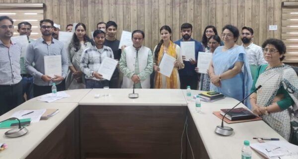 स्वास्थ्य मंत्री डा. धन सिंह रावत ने स्वास्थ्य महानिदेशालय में विभाग के तहत 9 मृतक आश्रितों एवं 2 सीधी भर्ती से चयनित अभ्यर्थियों नियुक्ति पत्र वितरित कर उन्हें सरकारी सेवा में आने पर बधाई दी। उन्होंने कहा कि नवनियुक्त कार्मिकों को राज्य के विभिन्न जनपदों में तैनाती दी गई है। अनुकंपा के आधार पर नौकरी पाने वाले मृतक आश्रितों अरुण कुमार, अखिलेश कुमार बिंद, आकाश कुमार, अमित शर्मा, अश्विनी कुमार, पीयूष जोशी, सुहैल, नीतू रानी एवं वंदना सिंह को विभाग के अंतर्गत विभिन्न स्थानों पर कनिष्ट सहायक पद पर नियुक्ति प्रदान की गई जबकि सीधी भर्ती के तहत चयनित मनोज सिंह एवं प्रिया रावत को वैयक्तिक सहायक पद पर तैनाती दी गई है। विभागीय मंत्री ने स्वास्थ्य महानिदेशालय में विभिन्न रिक्त पदों पर शीघ्र नियुक्ति करने के निर्देश भी अधिकारियों को दिये।