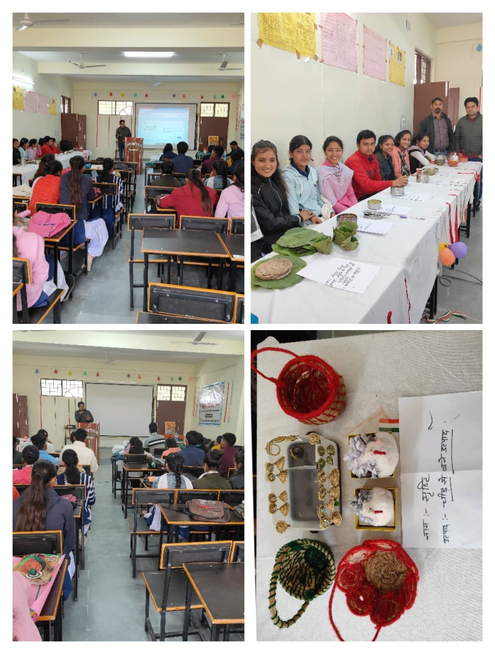 रिखणीख़ाल : देवभूमि उद्यमिता योजना के अंतर्गत उद्यमिता विकास कार्यक्रम का 12 दिवसीय प्रशिक्षण कार्यक्रम भारत सिंह रावत राजकीय महाविद्यालय, रिखणीख़ाल, पौड़ी गढ़वाल में अंतिम चरण में है। आज 22 मार्च 2024 को कार्यक्रम के 11वे दिन लगभग 30 प्रतिभागियों द्वारा एमएसएमई में उद्यम रजिस्ट्रेशन कराया गया। साथ ही प्रतिभागियों द्वारा प्रोजेक्ट रिपोर्ट भी सबमिट की गई। इस कार्यक्रम को लेकर प्रतिभागियों में काफी उत्साह रहा। प्रतिभागियों द्वारा आज कुछ पहाड़ी उत्पादों की प्रदर्शनी भी लगाई गई जिसमें चीड से बनने वाला सामान, मंडवे से बना केक, झंगोरी से बना काफूला, बिच्छू घास से बने खिचड़ी इत्यादि प्रमुख थे। इस अवसर पर उद्यमिता केंद्र के नोडल डॉक्टर विपिन पंवार द्वारा सभी प्रतिभागियों की सराहना की गई तथा इस प्रकार की प्रतियोगिताओं में भाग लेने के लिए प्रोत्साहित किया गया। इस अवसर पर डॉ अनूप सिंह, डॉ भारती, डॉ, प्रशांत, डॉ मनोज किशोर नौटियाल, डॉ सुनील सिंह, डॉ बिपिन कुमार तिवारी शिक्षणेत्तर कर्मचारी व सभी प्रतिभागी उपस्थित रहे।