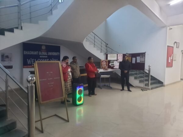 कोटद्वार : भगवंत ग्लोबल यूनिवर्सिटी कोटद्वार में बसन्त पंचमी के उपलक्ष्य में सरस्वती पूजन व सुभाष जयंती के अवसर पर नेता जी का भावपूर्ण स्मरण किया गया । भगवंत ग्लोबल यूनिवर्सिटी, कोटद्वार में आज बसन्त पंचमी के उपलक्ष्य में सरस्वती पूजन किया गया, कार्यक्रम का उद्घाटन विश्वविद्यालय के प्रतिकुलपति प्रोफे. पी. एस. राणा ने दीप प्रज्वलित कर किया। उन्होंने ज्ञान की अधिष्ठात्री देवी की पूजा करते हुए सभी के विचार, मन व बुद्धि की शुद्धता की कामना की एवं बसन्त पंचमी की सभी को हार्दिक बधाई दी। वहीं सुभाष जयंती के अवसर पर नेताजी सुभाष चन्द्र के योगदान की सराहना करते हुए उनका भावपूर्वक स्मरण किया गया व उन्हें श्रद्धासुमन अर्पित किया गया। कार्यक्रम में सभी कर्मचारी, छात्र-छात्राएं उपस्थित रहे। विश्वविद्यालय के चेयरमैन डॉ. अनिल सिंह, वाइस चेयरपर्शन डॉ. आशा सिंह व डॉ. विभांशु विक्रम सिंह ने सभी छात्र-छात्राओं व कर्मचारियों को बसन्त पंचमी की बधाई एवं शुभकामनायें दी।