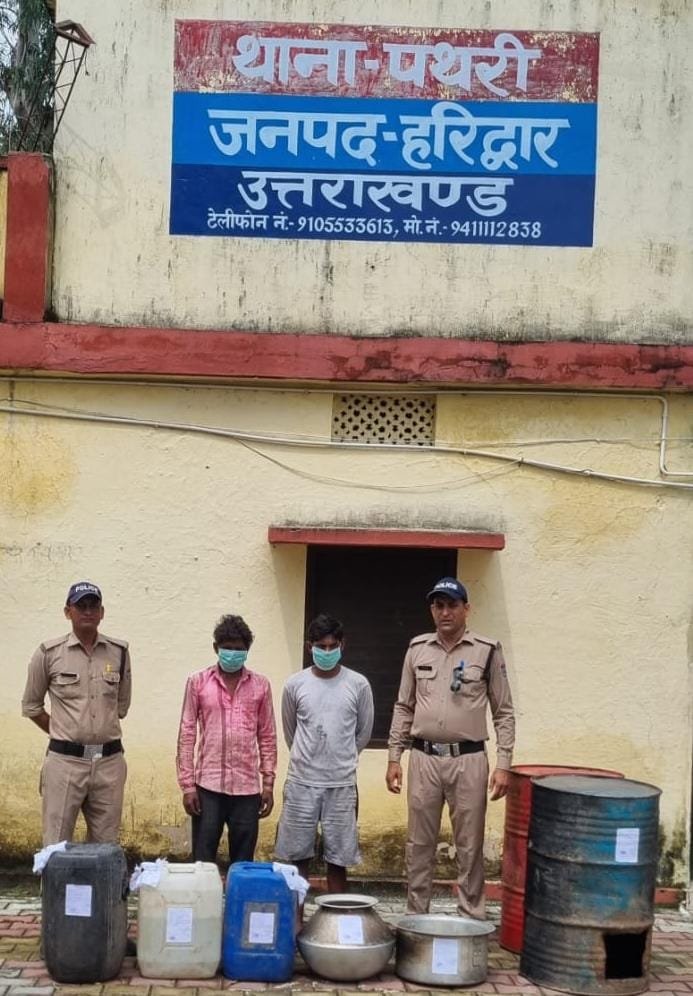 हरिद्वार : मुख्यमंत्री उत्तराखंड के “ड्रग्स फ्री देवभूमि मिशन 2025” अभियान को सार्थक बनाने हेतु एसएसपी हरिद्वार अजय सिंह द्वारा दिए गए कड़े दिशा निर्देशों के क्रम में थाना पथरी पुलिस टीम द्वारा ग्राम दिनारपुर के जंगलों में छापेमारी कर 02 अभियुक्तों को कच्ची शराब की कसीदगी करते हुए 100 लीटर कच्ची शराब व भट्टी उपकरणों के साथ दबोचा गया साथ ही मौके से लगभग 1000 लीटर लाहन नष्ट किया गया।