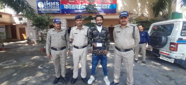 कोटद्वार। वरिष्ठ पुलिस अधीक्षक द्वारा अवैध तरीके से नशीले पदार्थों का क्रय-विक्रय करने वालों के विरुद्ध चलाए जा रहे अभियान के तहत बुधवार को अपर पुलिस अधीक्षक कोटद्वार शेखर सुयाल, पुलिस क्षेत्राधिकारी गणेश लाल कोहली व पुलिस उपाधीक्षक ऑपरेशन विभव सैनी के पर्यवेक्षण तथा प्रभारी निरीक्षक मनीभूषण श्रीवास्तव और सीआईयू प्रभारी निरीक्षक मौ0 अकरम के नेतृत्व में पुलिस टीम द्वारा चैकिंग के दौरान झूलापुल बस्ती निवासी अभियुक्त विनोद थापा पुत्र स्व0 टीकाराम को 4.13 ग्राम अवैध स्मैक के साथ गिरफ्तार किया गया। वह पिछले साल 2022 में भी स्मैक के मामले में जेल जा चुका है। अभियुक्त के बिरुद्ध थाना कोटद्वार में अभियोग पंजीकृत किया गया।