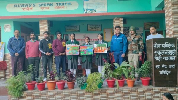 सतपुली । विकासखंड द्वारीखाल के अंतर्गत ग्रीन पब्लिक स्कूल सतपुली में मंगलवार को द हंस फाऊंडेशन द्वारा वनाग्नि की घटनाओं पर रोकथाम शीर्षक पर छात्र-छात्राओं के लिए चित्रकला प्रतियोगिता का आयोजन किया गया। चित्रकला प्रतियोगिता में वैष्णवी काला ने प्रथम, एंजेलीना सिंह ने द्वितीय व प्रगति वर्मा ने तृतीय स्थान प्राप्त किया । तीनों छात्र-छात्राओं को द हंस फाउंडेशन द्वारा ट्रॉफी व प्रशस्ति पत्र देकर सम्मानित किया गया। इसके साथ ही चित्रकला प्रतियोगिता में प्रतिभाग करने वाले सभी छात्र-छात्राओं को प्रशस्ति पत्र वितरित किए गए ।