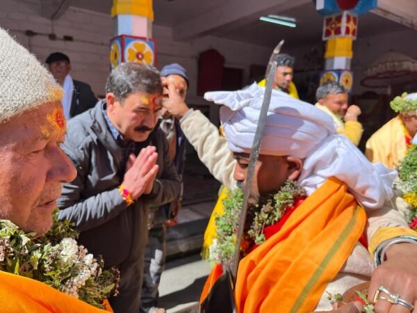 श्री बदरीनाथ धाम : जोशीमठ विकास खंड के फरकिया गांव से श्री बगड़़वाल देवता के पश्वा ( जिन पर देवता अवतरित होता है) समारोह पूर्वक आज बृहस्पतिवार को भगवान बदरीविशाल के दर्शन को पहुंचे। उन्होंने भगवान बदरीविशाल की पूजा-अर्चना कर मनौतियां मांगी। श्री बदरीनाथ केदारनाथ मंदिर समिति के मीडिया प्रभारी डा. हरीश गौड़ ने बताया कि मंदिर समिति की ओर से मंदिर अधिकारी राजेंद्र चौहान ने पश्वागणों का अंगवस्त्र तथा भगवान बदरीविशाल का प्रसाद भेंट किया तथा पश्वाओं का स्वागत किया। इस अवसर पर मंदिर अधिकारी राजेन्द्र चौहान, माणा के प्रधान पीतांबर मोल्फा, वेदपाठी रविन्द्र भट्ट, कर्मचारी संघ अध्यक्ष जगमोहन बर्त्वाल, अनसुया नौटियाल,पश्वा वचन सिंह रावत,विजय सिंह रावत,बलवंत सिंह रावत, नत्था सिंह, धर्मेन्द्र पाल तथा प्रभारी दफेदार कुलानंद पंत, विकास सनवाल, हरेंद्र कोठारी, योगेन्द्र नेगी, हरीश जोशी आदि मौजूद रहे।