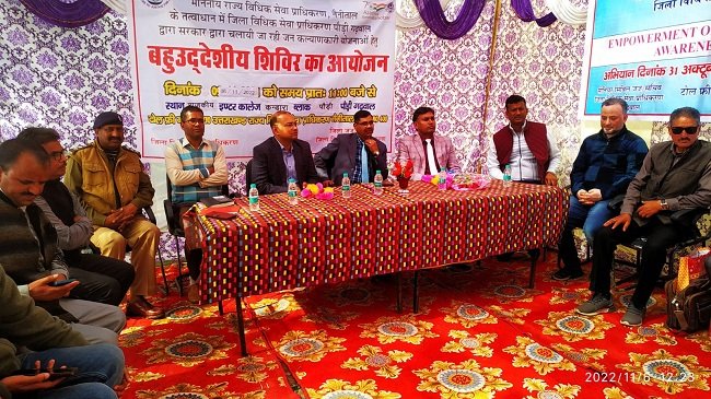 पौड़ी : जिला विधिक सेवा प्राधिकरण पौड़ी गढ़वाल द्वारा रविवार को अटल आदर्श उत्कृष्ठ राजकीय इण्टर कालेज कण्डारा परिसर में नालसा द्वारा चलाये जा रहे जन कल्याणकारी योजनाओं हेतु बहुउद्देशीय शिविर का आयोजन किया गया। शिविर में राजस्व विभाग, श्रम विभाग, स्वास्थ्य विभाग, समाज कल्याण विभाग, कृषि विभाग, पशुपालन विभाग, विद्युत विभाग, उद्योग विभाग, स्वजल विभाग, जिला पूर्ति विभाग, बाल विकास विभाग, शिक्षा विभाग सहित अन्य विभागों द्वारा कैम्प लगाकार आमजनता की समस्याओं का निस्तारण किया गया।