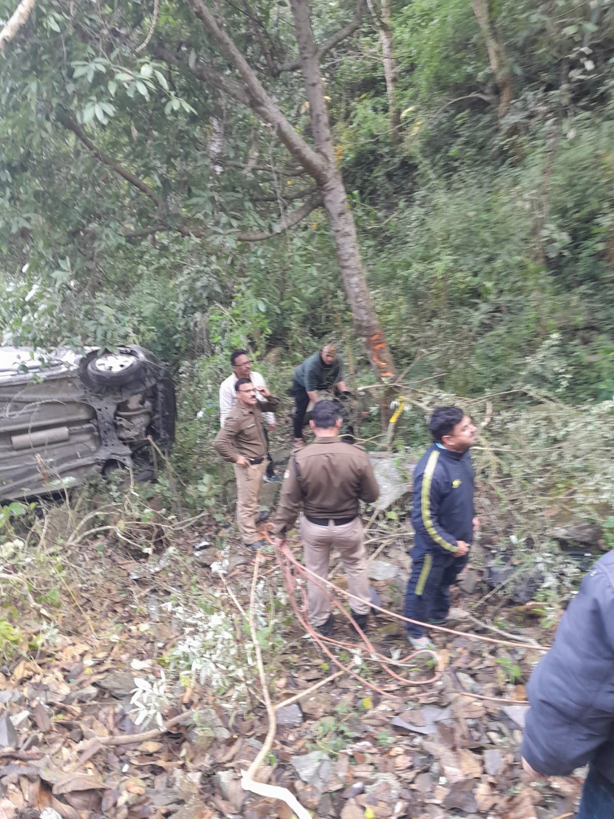 सतपुली/पौड़ी : जिला नियन्त्रण कक्ष पौड़ी के माध्यम से थाना सतपुली पर सूचना प्राप्त हुई कि कुल्हड़ बैण्ड के पास वाहन संख्या UK 15C 2901 (वैगनार) कार अनियंत्रित होकर गहरी खाई में गिर गया है। सूचना पर जनपद के थाना सतपुली, लैन्सडाउन एवं एसडीआरएफ टीम मय राहत एवं बचाव उपकरणों के घटनास्थल पर पहुँचे तो वाहन सड़क से करीब 150 मीटर गहरी खाई में गिरा हुआ था एवं वहां से चीखने चिल्लाने की आवाजें आ रही थी। जिस पर पुलिस टीम द्वारा त्वरित रेस्क्यू करते हुये स्थानीय व्यक्तियों की मदद से कड़ी मशक्कत कर गहरी खाई में उतर कर घायलों का रेस्क्यू कर सड़क तक लाया गया। उक्त वाहन को चालक दलबीर सिंह चला रहे थे, वाहन में 06 लोग बैठे हुये थे। जिसमें से 02 महिलाओं की मौके पर मृत्यु हो गई, शेष 04 घायलों को पुलिस टीम राहत एवं बचाव कार्य कर 108 के माध्यम से (03 को हंस फाउण्डेशन सतपुली एवं 01 को कोटद्वार) अस्पताल पहुँचाया गया।