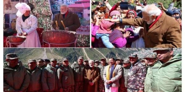 पिथौरागढ़ : प्रधानमंत्री नरेन्द्र मोदी ने गुंजी गांव में स्थानीय लोगों से मिलकर उनसे बातचीत की। गुंजी गांव में दूर-दराज से पहुंचे लोग प्रधानमंत्री को अपने बीच पाकर उत्साहित दिखे। इस दौरान प्रधानमंत्री ने च्यूबाला पहनी रंगस्या (महिलाओं) से आशीर्वाद भी लिया। गुंजी में सेना के जवानों के साथ बातचीत कर प्रधानमंत्री ने उनका हौसला बढ़ाया। प्रधानमंत्री ने रं समाज कल्याण समिति के लोगों से भी भेंटवार्ता की। रं समाज कल्याण समिति के लोग पारम्परिक वेशभूषा में थे। प्रधानमंत्री नरेन्द्र मोदी ने इस अवसर पर स्वयं नगाड़ा भी बजाया।