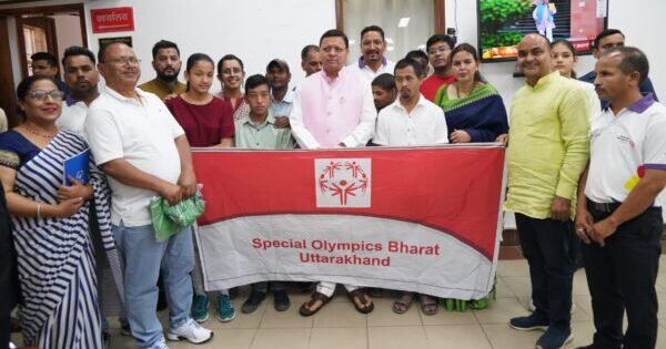देहरादून : मुख्यमंत्री पुष्कर सिंह धामी से रविवार को मुख्यमंत्री कैम्प कार्यालय में स्पेशल ओलंपिक वर्ल्ड समर गेम्स में प्रतिभाग करने के लिए जा रहे खिलाड़ियों और कोच ने भेंट की। मुख्यमंत्री ने सभी खिलाड़ियों एवं कोच को 17 जून से 25 जून 2023 तक बर्लिन, जर्मनी में होने वाले इन खेलों के लिए शुभकामनाएं दी और उनके उज्ज्वल भविष्य की कामना की। उत्तराखंड से स्पेशल ओलिंपिक भारत एरिया के दो फुटसेल खिलाड़ी और तीन कोच का चयन जर्मनी में होने वाले स्पेशल ओलंपिक वर्ल्ड समर गेम्स के लिए हुआ है। 12 जून को ये खिलाड़ी जर्मनी के लिए रवाना होंगे। जिनमें फुटसेल खिलाड़ी हिमांशु बिष्ट और हर्षित कुमार, वॉलीबाॅल कोच जगदीश चौहान, उपदेश उपाध्याय और फुटसेल कोच जितेंद्र कुमार का नाम है। इस अवसर पर स्पेशल ओलिंपिक उत्तराखंड के निदेशक डी.बी.पी.एस रावत, जगदीश चौहान, अंकुर अग्रवाल, राजेश भट्ट एवं विजयलक्ष्मी उपस्थित थे।