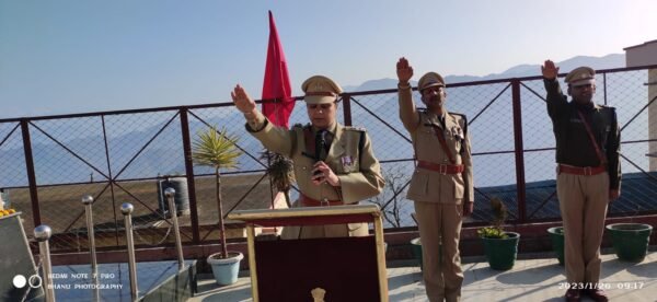 पौड़ी : 74 वें गणतन्त्र दिवस के अवसर पर पौड़ी पुलिस द्वारा ध्वजारोहण कर देश की अखण्डता एवं सम्प्रभुता की ली गई शपथ। आज 26 जनवरी 2023 को 74 वें गणतन्त्र दिवस के अवसर पर वरिष्ठ पुलिस अधीक्षक श्वेता चोबै द्वारा पुलिस लाईन पौड़ी में ध्वजारोहण कर उपस्थित सभी पुलिस अधिकारी/कर्मचारी गणों को गणतन्त्र दिवस संकल्प की शपथ दिलाई गयी। साथ ही प्रेम लाल टम्टा द्वारा पुलिस कार्यालय एवं जनपद के समस्त थाना/चौकी प्रभारियों द्वारा सम्बन्धित थाना/चौकी में ध्वजारोहण किया गया। साथ ही इस वर्ष उत्तराखण्ड पुलिस के विभिन्न पदक, सम्मान चिह्न व मैडल से सम्मानित अधिकारी/कर्मचारियों के नाम पढकर सुनाए गए।
