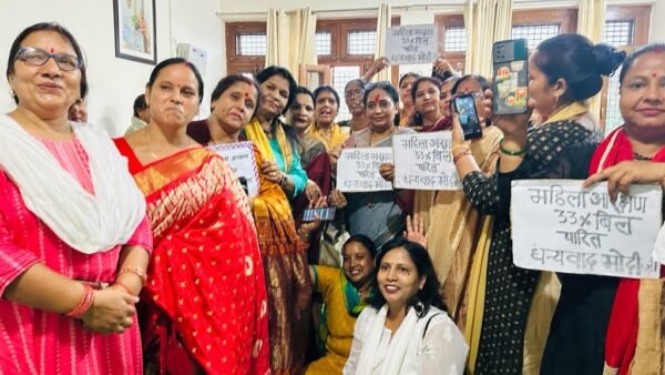 कोटद्वार । देश की सर्वोच्च संस्था लोकसभा और राज्यसभा में प्रधानमंत्री नरेंद्र मोदी के नेतृत्व में नारी शक्ति वंदन बिल पास होने पर कोटद्वार जिला भाजपा महिला मोर्चा ने कोटद्वार स्थित विधानसभा अध्यक्ष ऋतु खण्डूडी भूषण के पीडब्ल्यूडी कैंप कार्यालय में खुशी व्यक्त करते हुए प्रधानमंत्री सहित भाजपा नेतृत्व का आभार व्यक्त किया व नारेबाजी के बीच मिष्ठान वितरित किया। भाजपा महिला मोर्चा की कार्यकर्ता झंडाचौक स्थित पीडब्ल्यूडी कैंप कार्यालय में एकत्र हुई व दोनो सदनों में नारी शक्ति वंदन पास किए जाने पर खुशी व्यक्त करते हुए भाजपा नेतृत्व व प्रधानमंत्री नरेंद्र मोदी के समर्थन में जोरदार नारेबाजी कर मिष्ठान वितरित किया।