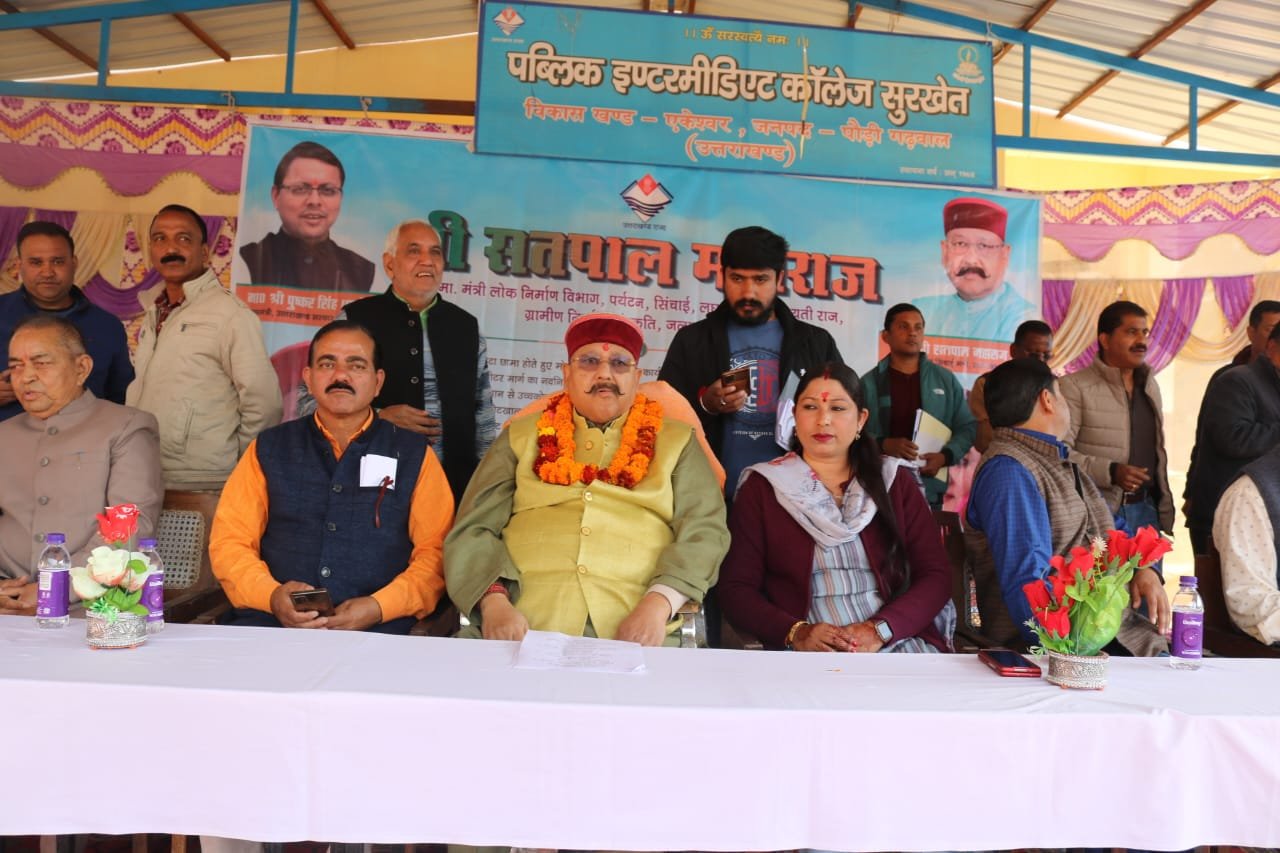 इस दौरान लोक निर्माण मंत्री और चौबट्टाखाल विधायक सतपाल महाराज ने अपने विधानसभा क्षेत्र विकासखंड ऐकेश्वर के अंतर्गत राज्य योजना के तहत छोटा छामा होते हुए द्वितीय स्टेज-1 लम्बाई 0.475 किमी मोटर मार्ग, लागत 11.58 लाख, लाटखाल नौगांव होते हूए बल्यूली तक 1.825 किमी, फेज-2 स्टेज-1 मोटर मार्ग नव निर्माण कार्य, मुख्यमंत्री घोषणा के अंतर्गत पिंगलपाखा से उच्चकोट तक 64.89 लाख द्वितीय चरण स्टेज-1, की 2.175 किमी लम्बे मोटर मार्ग के निर्माण कार्यों का शिलान्यास करने के साथ-साथ 1 किमी लम्बे और 54.65 लाख की लागत के तुनाखाल-मनकोट-खाल-नौली-पाली मोटर मार्ग द्वितीय चरण के डामरीकरण कार्य, 1 किमी लम्बे और 62.26 लाख की लागत के खलेउ-पीपली-कुमराडी-सालकोट मोटर मार्ग के डामरीकरण के कार्य, 4.5 किमी लम्बे 306.42 लाख की लागत के पाटीसैण-तछवाड-ऐकेश्वर मोटर मार्ग के सुधारी करण एवं डामरीकरण, 121.12 लाख की लागत के भरपुर सेम ग्वाड कुलासू मोटर मार्ग के सुधारी करण एवं डामरीकरण के साथ साथ 151.21 लाख की लागत से मलेटी बैण्ड से गौचीखेत पणीया मोटर मार्ग के डामरीकरण के कार्यों का लोकार्पण भी किया। इस अवसर पर जिला पंचायत अध्यक्ष शांति देवी, ब्लाक प्रमुख एकेश्वर नीरज पांथरी, भाजपा मंडल अध्यक्ष सत्यराज सिंह नेगी, वेद प्रकाश वर्मा, देवेंद्र भट्ट, इंटर कॉलेज सुरखेत के प्रबंधक प्रदीप नेगी, पूर्व प्रधानाचार्य राजेंद्र नेगी, सहित अन्य अधिकारी व स्थानीय लोग उपस्थित थे।