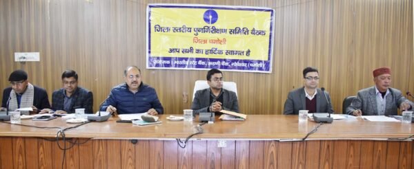 चमोली : जिला स्तरीय पुनरीक्षण समन्वय समिति (डीएलआरसी) की त्रैमासिक बैठक क्लेक्ट्रेट सभागार में जिलाधिकारी हिमांशु खुराना की अध्यक्षता में संपन्न हुई। जिसमें बैंकिग सुविधाओं के साथ ही सरकार द्वारा प्रयोजित स्वरोजगार योजनाओं मे ऋण आवंटित करने और सभी बैंक खाताधारकों को शत प्रतिशत डिजिटल लेनदेन हेतु सक्षम बनाने के निर्देश दिए गए। इस दौरान नाबार्ड द्वारा प्रकाशित संभाव्यतायुक्त ऋण योजना पुस्तक का विमोचन भी किया गया।
