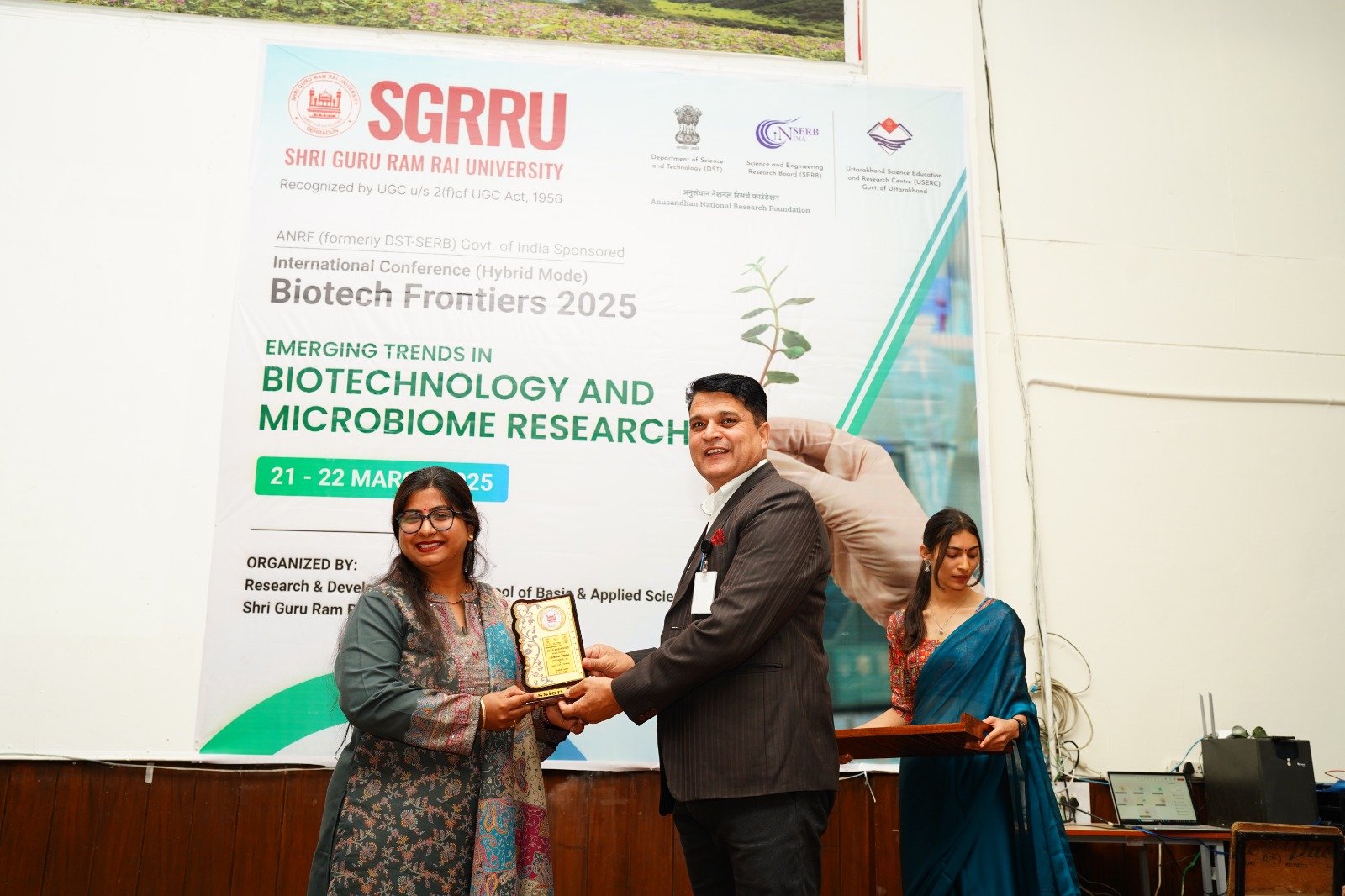 डाॅ कुमार सिद्धार्थ सिंह, आईआईटी पटना, प्रो. डाॅ सुदर्शन सिंह, चियंगमिआई विश्वविद्यालय, थाईलैंण्ड, प्रो. वेरेनियम ओहाल, प्रो अनासेचेज सिल्वा, काइंब्रा विश्वविद्यालय, पुर्तगाल सहित 100 से अधिक शोधार्थियों ने अपने अपने शोध पत्रों के माध्यम से बायोटेक से सम्बन्धित विभिन्न महत्वपूर्णं विषयों पर जानकारी सांझा की। श्री गुरु राम राय विश्वविद्यालय की निहारिका आर्या को बैस्ट पोस्टर का अवार्ड मिला। दिशांनी मलिक, आईआईटी रुड़की को यंग साइंटिस्ट अवार्ड से सम्मानित किया गया। विश्वविद्यालय की कुलपति डाॅ प्रो. कुमुद सकलानी, प्रो. जे.पी. पचैरी, सलाहकार, प्रेजिडेंट, श्री गुरु राम राय विश्वविद्यालय, डाॅ लोकेश गम्भीर, कुलसचिव, एसजीआरआरयू एवं डाॅ गिरीश चन्द्रा द्वारा सभी विजेताओं को सम्मानित किया गया। डाॅ रश्मि वर्मा जुयाल ने धन्यवाद ज्ञापित किया।