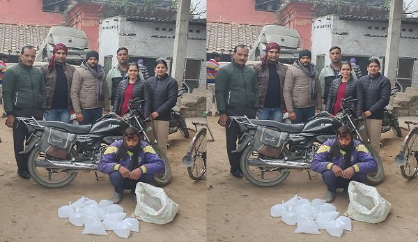रूडकी : आबकारी निरीक्षक क्षेत्र 2 रूडकी की टीम द्वारा मुखबिर खास की सूचना पर कगावाली के गांव से एक व्यक्ति बाईक पर कच्ची शराब की सप्लाई करने जाएगा मुखबिर द्वारा बताए गए रास्ते पर पूरी टीम मुस्तैदी के साथ लगाई गई एक संदिग्ध व्यक्ति बाईक पर आ रहा था को रोकने का इशारा किया तो बाईक को लेकर खेती के रास्ते से भागने का प्रयास किया परन्तु स्टाफ की मुस्तैदी से पकडे मे कामयाब रहे जिसकी तलाशी लेने पर उसके पास से एक प्लास्टिक के कट्टे मे लगभग 40 लीटर कच्ची शराब बरामद हुई एक बाईक के साथ गिरफ्तार कर अभियोग पंजीकृत किया गया। आबकारी विभाग की टीम में आबकारी निरीक्षक शुजाअत हसन, सन्नी सैनी, मधुर कुमार, रेनू , इस्तुखार, पारुल प्रधान आबकारी सिपाही एवं प्रमिला आबकारी सिपाही शामिल रहे