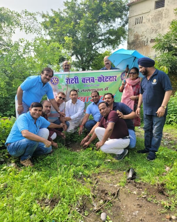 कोटद्वार । रोटरी क्लब कोटद्वार के तत्वावधान मे हरेला पर्व के अन्तर्गत गोविंद नगर स्थित गुरूद्वारा के सामने रेलवे परिसर मे वृक्षारोपण कार्यक्रम का आयोजन किया गया जिसमें जामुन, आंवला, रोपण ,गोल्ड मोहर, बौटल ब्रुश, कैशिया ग्लूका, कचनार व विभिन्न प्रकार के फलदार व छायादार वृक्ष लगाये गये ।
