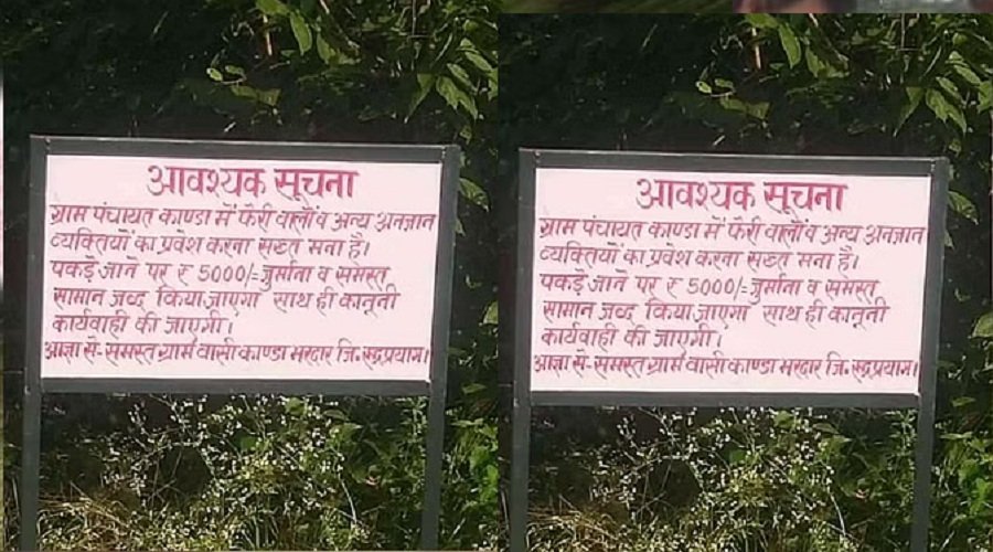 इतना ही नहीं पकड़े जाने पर जखोली विकासखंड के कांडा-भरदार में किसी फेरी वाले और बाहरी के पकड़े जाने पर कानूनी कार्रवाई के साथ ही पांच हजार रुपये का जुर्माना भी लगाया गया है। वहीं, इस मामले में पुलिस का कहना है कि ग्राम पंचायत अपने सीमा क्षेत्र में बाहरी लोगों के प्रवेश को वर्जित करने के लिए इस तरह के सूचना बोर्ड लगाने के लिए स्वतंत्र है। किसी भी तरह के आपत्तिजनक बोर्डों के खिलाफ पहलेे भी कार्रवाई की गई है और आगे भी की जाएगी।