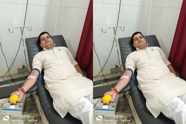 मंच के जिला संयोजक सौरभ गोदियाल ने वृक्षारोपण करने के उपरांत स्वैच्छिक रक्तदान किया एवं लोगों को रक्तदान के प्रति जागरूक किया। वह विगत 11 वर्षों से स्वैच्छिक रक्तदान कर रहे हैं एवं आवश्यकता पड़ने पर 42 से अधिक बार रक्तदान कर चुके हैं। जन्म दिवस के उपलक्ष में सौरभ गोदियाल के वृक्षारोपण एवं रक्तदान करने की वजह से पूरे कोटद्वार में चर्चा का विषय बना हुआ है। सौरभ गोदियाल ने सभी युवाओं से अपील की है कि आप भी ज्यादा से ज्यादा रक्तदान एवं वृक्षारोपण कर वातावरण को शुद्ध करने में योगदान प्रदान करें। इस अवसर पर मंच के जिला संयोजक सौरभ गोदियाल, जिला सहसंयोजक अनूप ध्यानी, प्रीतम नेगी, तरुण जदली, हिमांशु बिष्ट, संदीप डोबरियाल, कपिल राज निषाद, गौरव बिष्ट, पवन जुयाल, सत्यपाल सिंह, आनंद गोस्वामी, सारिका कठैत, मनीषा राणा, रश्मि रावत, सोनम, आदि ने प्रतिभाग किया।