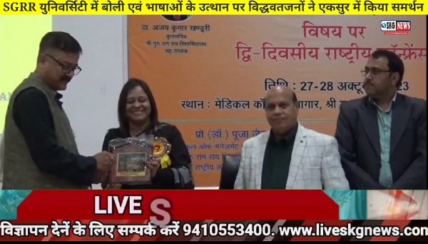शनिवार को श्री गुरु राम राय विश्वविद्यालय के स्कूल आफ मैनेजमेंट एण्ड कामर्स स्टडीज की ओर से आयोजित दो दिवसीय राष्ट्रीय सम्मेलन का समापन हुआ। कार्यक्रम में डाॅ सुलेखा डंगवाल, कुलपति, दून विश्वविद्यालय ने बतौर मुख्य अतिथि भाग लिया। उन्होंने कहा कि देश में बोली एवं भाषाओं को समृद्ध व पहुंच योग्य बनाने के लिए विद्धवतजनों को भी आगे आकर अपनी भूमिका निश्चित करनी होगी। अंग्रेजी भाषा को ज्ञान के साथ जोड़कर किसी व्यक्ति की रचनात्मकता की तुलना नहीं की जा सकती है। अंग्रेजी भाषा बोलने के उपनिवेशवाद का वह दौर अब अस्त की ओर है जब केवल धाराप्रवाह अंग्रेजी बोलने वाले को ही विद्वता का पैमाना माना जाता था। उन्होंने कहा कि भाषा को ज्ञान के साथ जोड़कर रचनात्मकता का हास नही किया जा सकता है। अपनी भाषा के बारे में सही समझ व ज्ञान रखकर अपने किसी भी पेशेवर पढ़ाई की महारथ हासिल कर सकते हैं। जर्मनी चीन जैसे देश इसका ज्वलंत उदाहरण हैं।