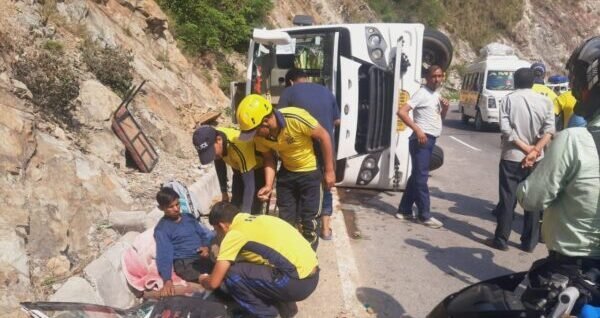 बदरीनाथ हाइवे पर यात्रियों से भरी बस सड़क पर पलटी, एसडीआरएफ ने चलाया रेस्क्यू ऑपरेशन