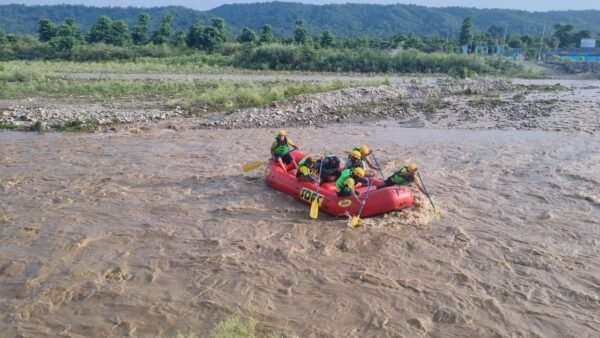 देहरादून : जनपद देहरादून- छिद्दरवाला में सोंग नदी के टापू पर फंसे लोगों का एसडीआरएफ ने किया सफल रेस्क्यू। आज 05 जुलाई 2023 को आपदा नियंत्रण कक्ष, देहरादून द्वारा एसडीआरएफ को सूचित किया गया कि अतिवृष्टि से छिद्दरवाला में सोंग नदी का जलस्तर अचानक बढ़ने के कारण 02 लोग नदी पर बने टापू में फंस गए हैं। उक्त सूचना पर पोस्ट ढालवाला से इंस्पेक्टर कवीन्द्र सजवाण के हमराह SDRF रेस्क्यू टीम मय फ्लड रेस्क्यू उपकरणों के घटनास्थल के लिए रवाना हुई। SDRF टीम द्वारा अविलंब घटनास्थल पर पहुंचकर बिना समय गंवाए राफ्ट की सहायता से टापू पर फंसे व्यक्तियों तक पहुंचकर उन्हें सकुशल राफ्ट में बैठाकर नदी के पार लाया गया।