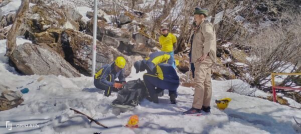 चमोली : जनपद चमोली, घाघरिया-जंगल में दिखे अज्ञात शव को SDRF ने किया बरामद। आज 23 फरवरी 2023 को थाना जोशीमठ से SDRF टीम को सूचित किया गया कि हेमकुंड साहिब मार्ग पर घांघरिया से लगभग 1.5 किमी आगे जंगल में एक अज्ञात शव दिखाई दे रहा है, जिसे निकालने हेतु SDRF टीम की आवश्कता है। उक्त सूचना पर SDRF टीम उपनिरीक्षक मनमोहन सिंह के हमराह मय रेस्क्यू उपकरणों के तत्काल घटनास्थल के लिए रवाना हुई। SDRF टीम द्वारा अत्यधिक विषम परिस्थितियों में पैदल मार्ग से होते हुए घटनास्थल पर पहुँचकर उक्त अज्ञात पुरुष के शव को कब्जे में लिया तथा बॉडी बैग में डालकर स्ट्रैचर के माध्यम से मुख्य मार्ग तक लाकर जिला पुलिस के सुपुर्द किया गया।